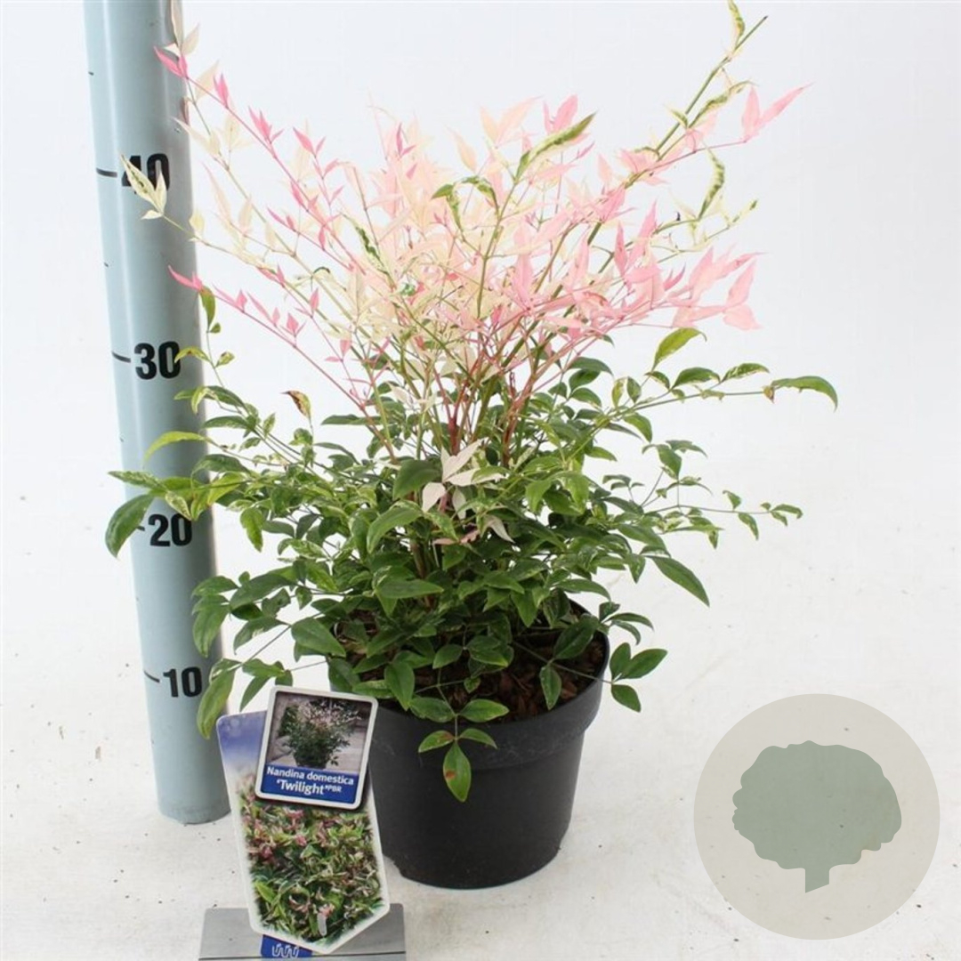 | Toelichting | De Hemelse bamboe 'Twilight' is een prachtige sierheester met witte bloemen en groen blad. Deze plant bloeit in juni en juli en gedijt goed in zon en halfschaduw op zandgrond, lichte klei of neutrale grond. |