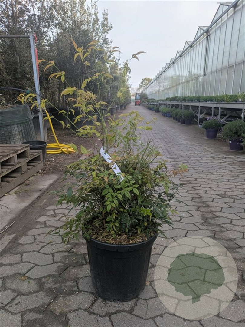 | Toelichting | De Hemelse bamboe is een prachtige struik met groen blad dat in de herfst verandert in een opvallende rode kleur. In de zomer bloeit de plant met witte bloemen, waarna rode bessen verschijnen. Geschikt voor zon en halfschaduw op verschillende grondsoorten. |