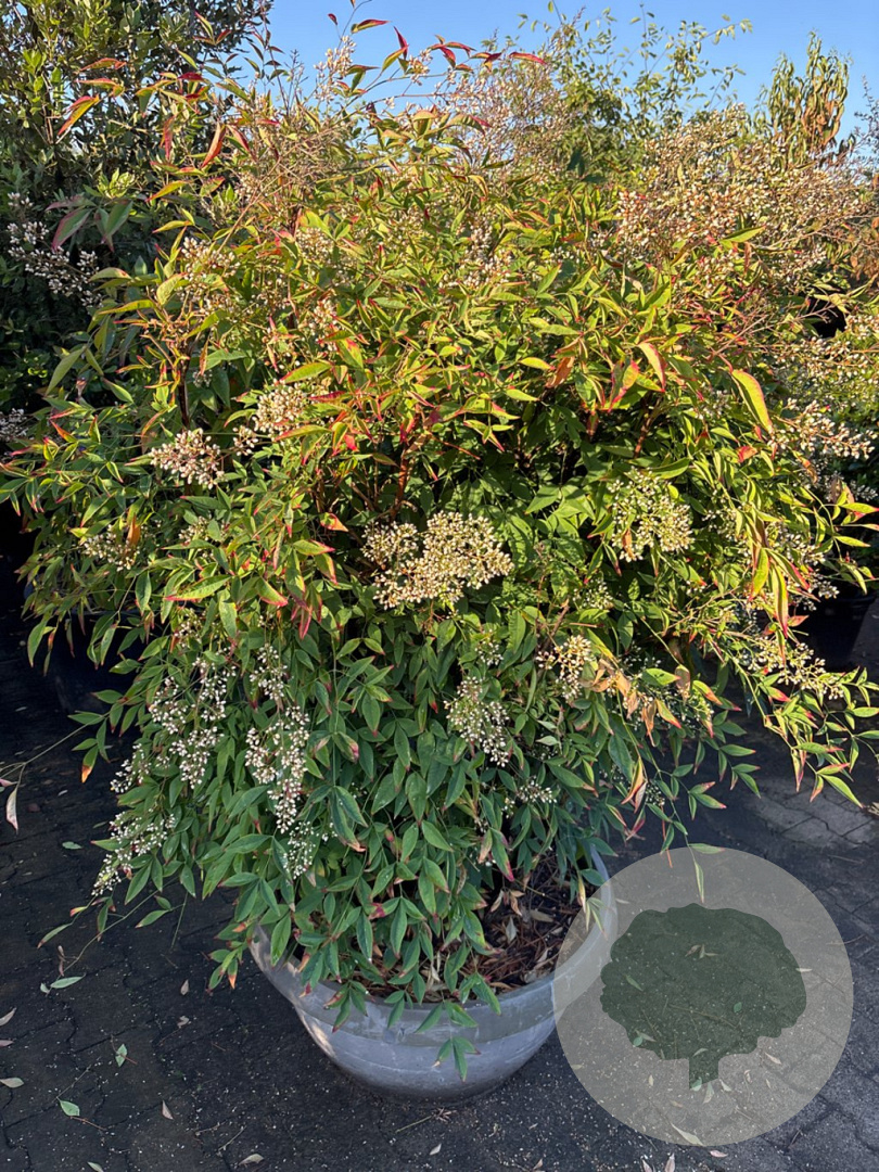 | Toelichting | De Hemelse bamboe is een prachtige struik met groen blad dat in de herfst verandert in een opvallende rode kleur. In de zomer bloeit de plant met witte bloemen, waarna rode bessen verschijnen. Geschikt voor zon en halfschaduw op verschillende grondsoorten. |