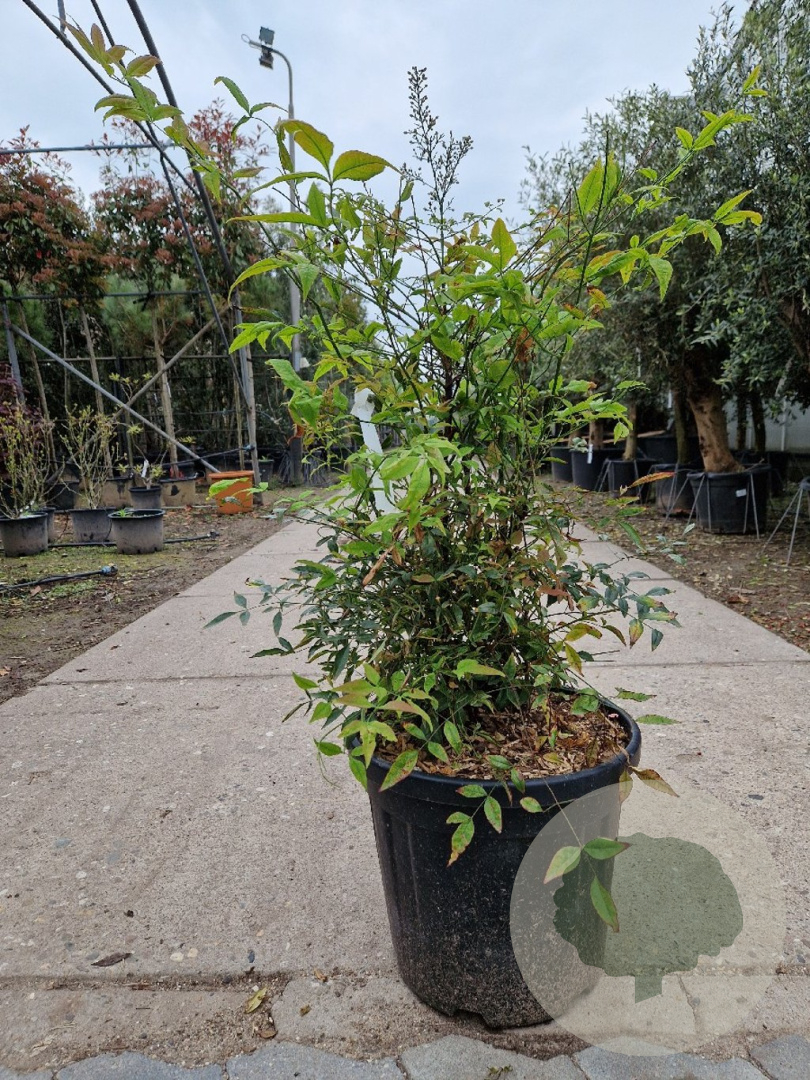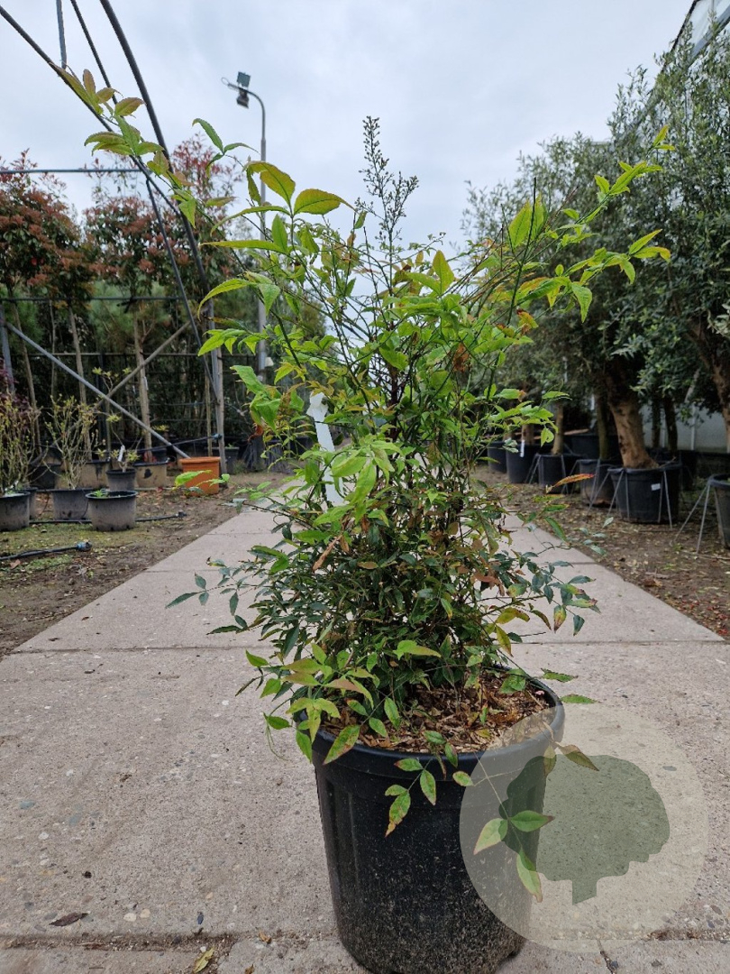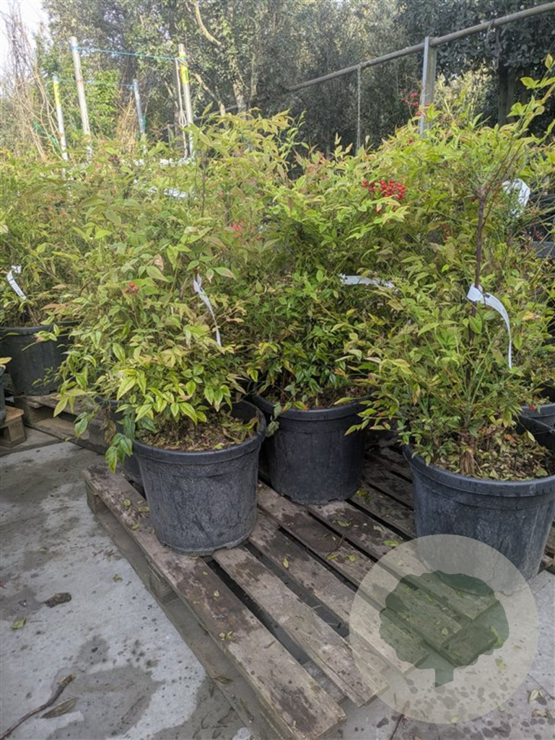 | Toelichting | De Hemelse bamboe is een prachtige struik met groen blad dat in de herfst verandert in een opvallende rode kleur. In de zomer bloeit de plant met witte bloemen, waarna rode bessen verschijnen. Geschikt voor zon en halfschaduw op verschillende grondsoorten. |