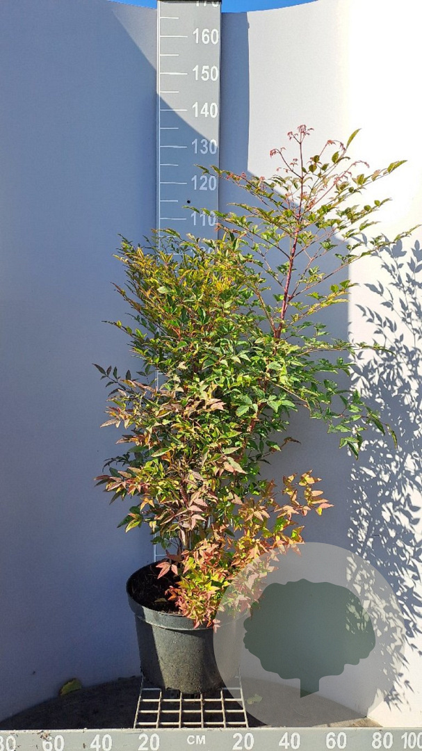 ToelichtingDe Hemelse bamboe is een prachtige struik met groen blad dat in de herfst verandert in een opvallende rode kleur. In de zomer bloeit de plant met witte bloemen, waarna rode bessen verschijnen. Geschikt voor zon en halfschaduw op verschillende grondsoorten.