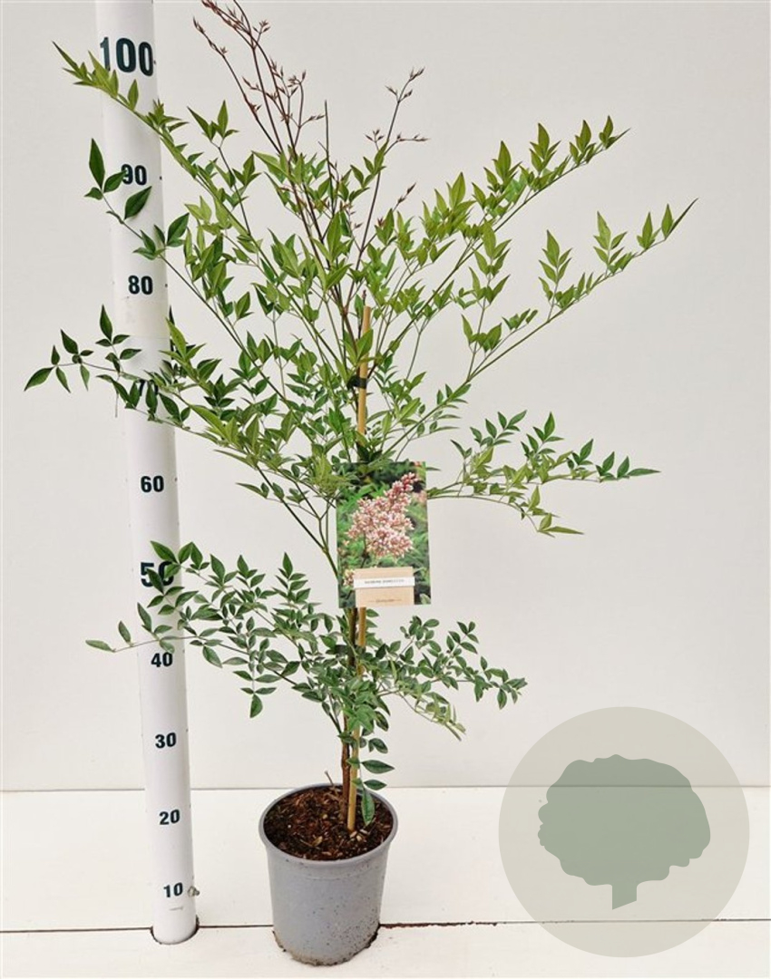 | Toelichting | De Hemelse bamboe is een prachtige struik met groen blad dat in de herfst verandert in een opvallende rode kleur. In de zomer bloeit de plant met witte bloemen, waarna rode bessen verschijnen. Geschikt voor zon en halfschaduw op verschillende grondsoorten. |