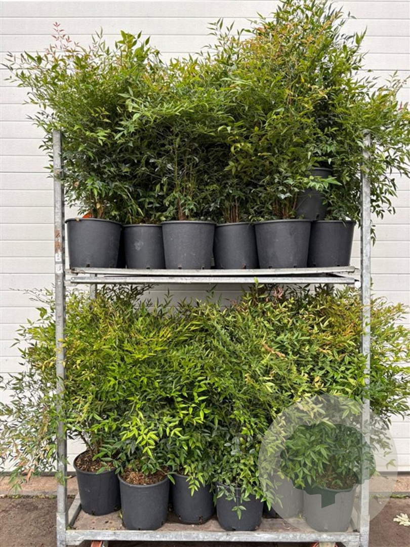 | Toelichting | De Hemelse bamboe is een prachtige struik met groen blad dat in de herfst verandert in een opvallende rode kleur. In de zomer bloeit de plant met witte bloemen, waarna rode bessen verschijnen. Geschikt voor zon en halfschaduw op verschillende grondsoorten. |