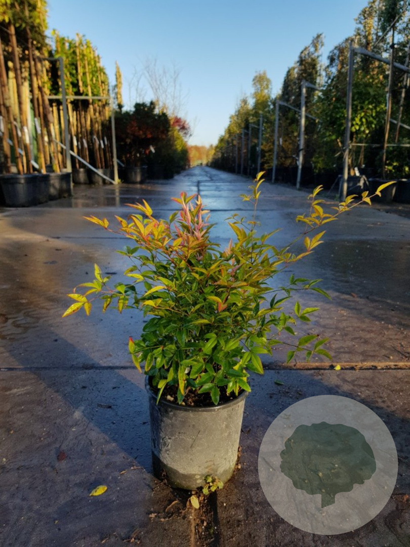| Toelichting | De Hemelse bamboe is een prachtige struik met groen blad dat in de herfst verandert in een opvallende rode kleur. In de zomer bloeit de plant met witte bloemen, waarna rode bessen verschijnen. Geschikt voor zon en halfschaduw op verschillende grondsoorten. |