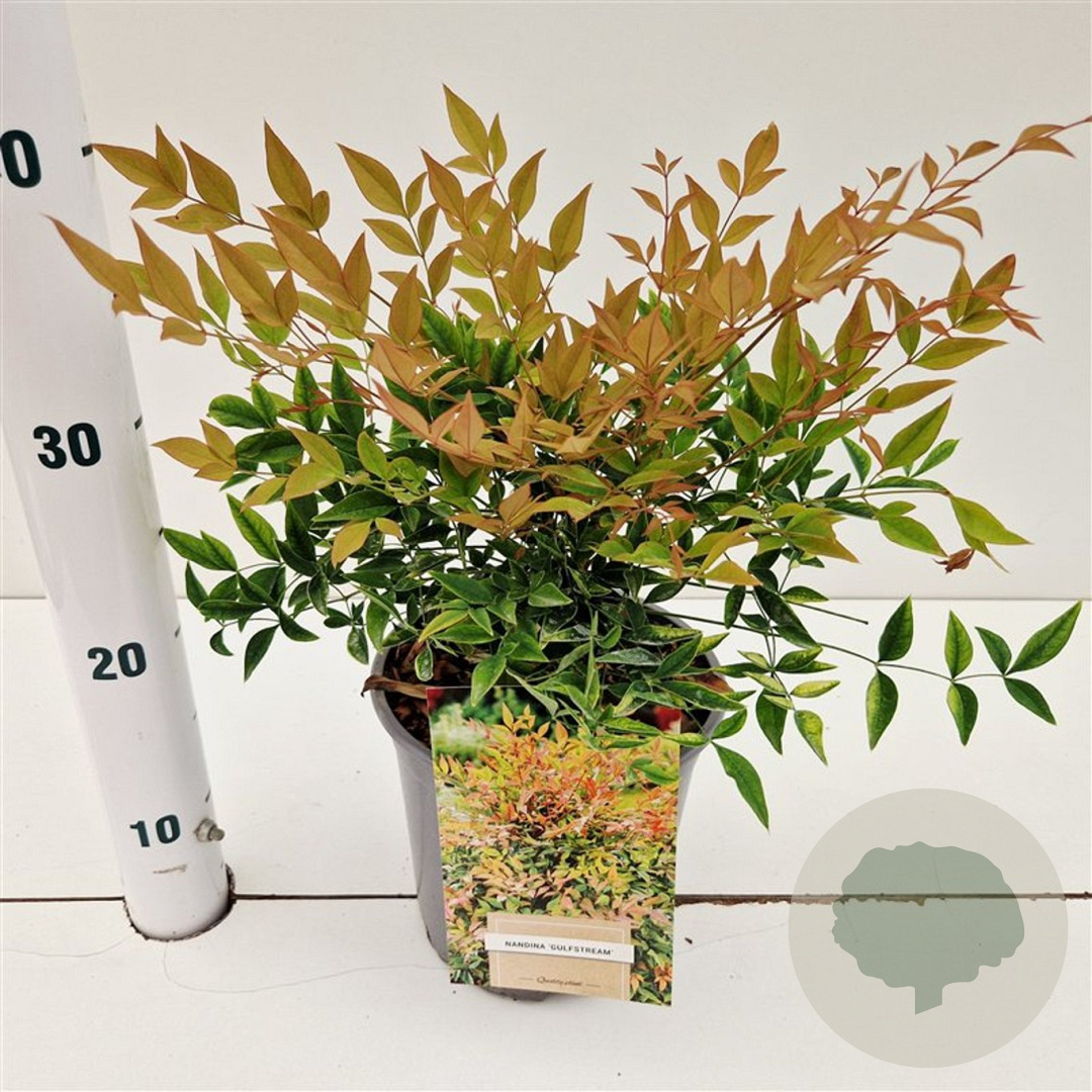 | Toelichting | De Hemelse bamboe (Nandina domestica 'Gulfstream') is een compacte struik met groen blad en witte bloemen in juni-juli. Geschikt voor zon en halfschaduw op zandgrond, lichte klei of neutrale grond. Bereikt een hoogte van 60-90 cm. |