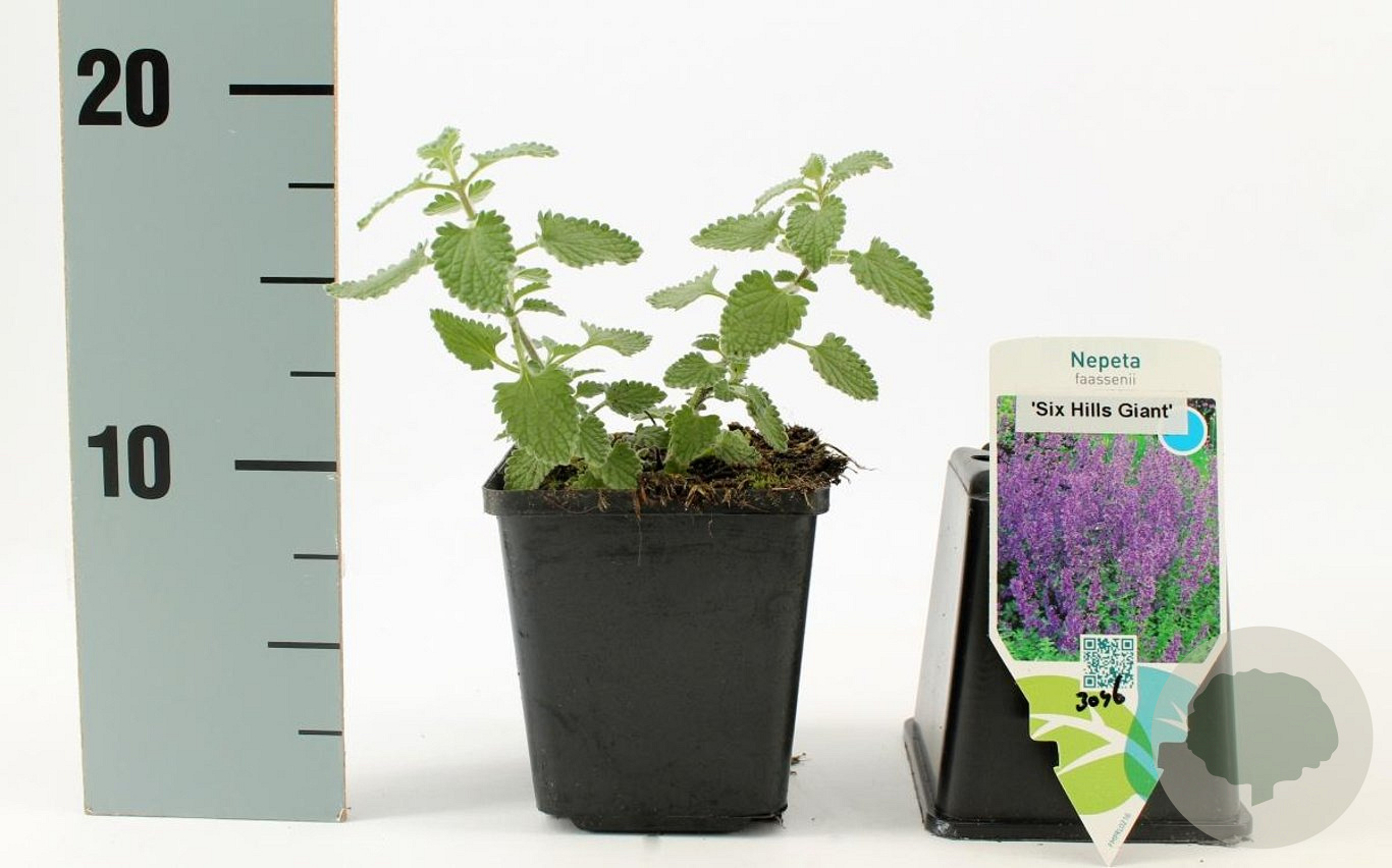 Toelichting | Kattenkruid (Nepeta faassenii 'Six Hills Giant') is een prachtige vaste plant met paarse bloemen en groen blad. Deze plant bloeit van juni tot september en gedijt goed in zon en halfschaduw op lichte klei, neutrale grond of goede tuingrond. |
