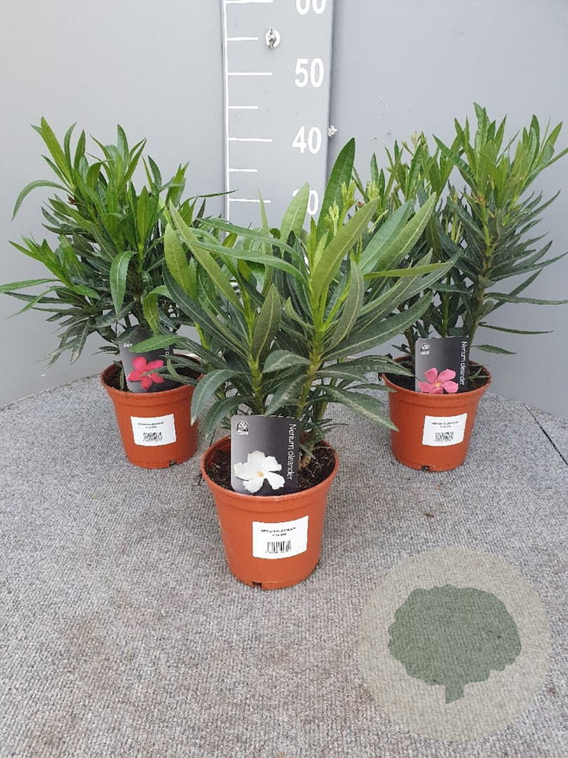 | Toelichting | De Oleander (Nerium oleander) is een prachtige, mediterrane struik met opvallende bloemen in de kleuren roze, wit en rood. Deze plant bloeit van juni tot september en gedijt het beste in de volle zon op verschillende grondsoorten. Perfect voor een zonnige tuin! |