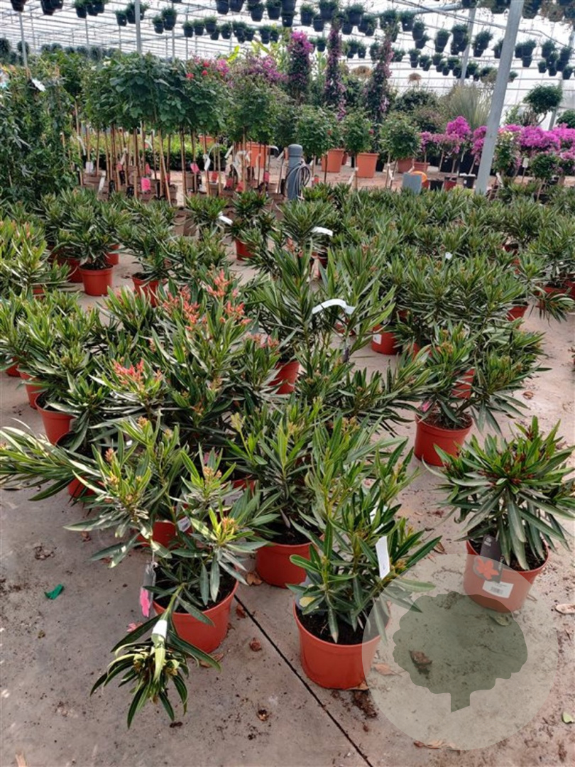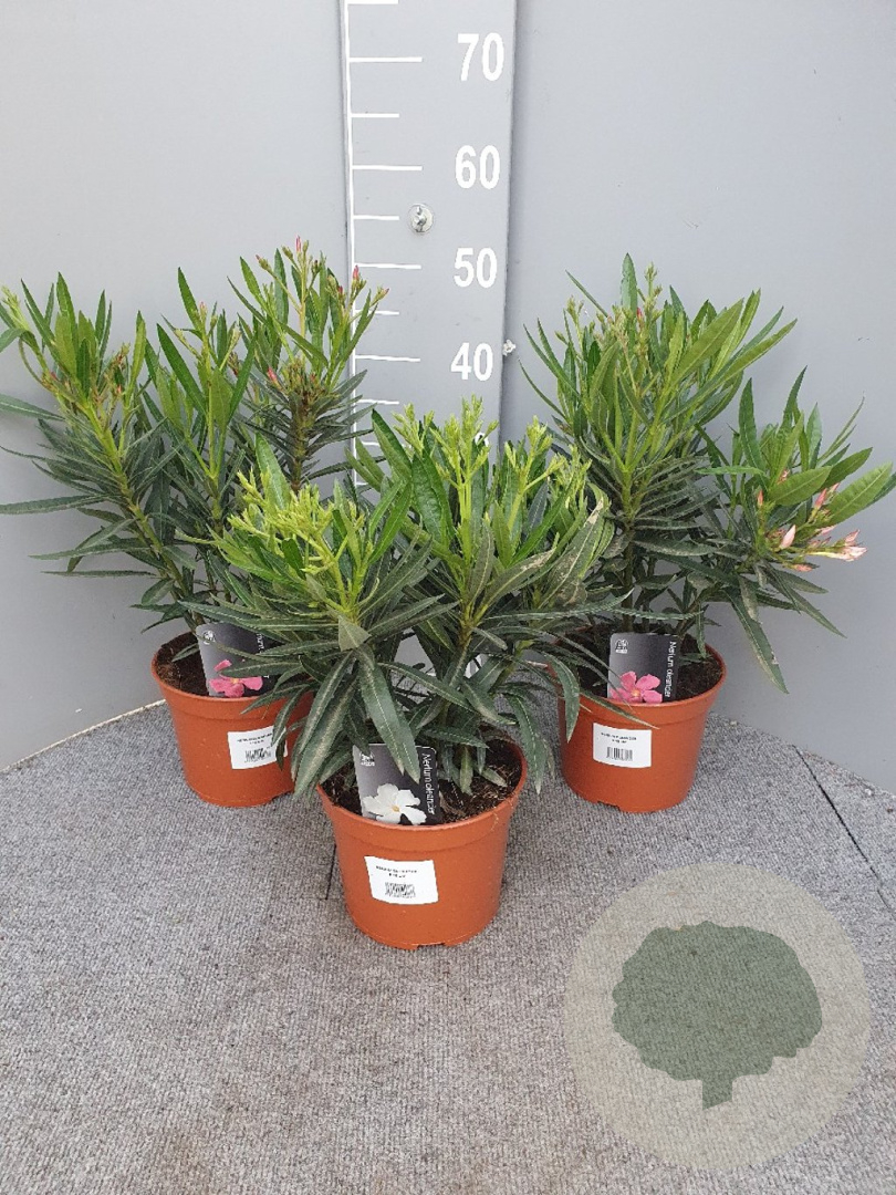| Toelichting | De Oleander (Nerium oleander) is een prachtige, mediterrane struik met opvallende bloemen in de kleuren roze, wit en rood. Deze plant bloeit van juni tot september en gedijt het beste in de volle zon op verschillende grondsoorten. Perfect voor een zonnige tuin! |