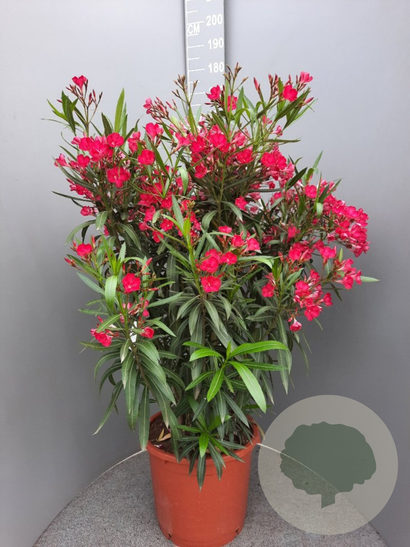 | Toelichting | De Oleander (Nerium oleander) is een prachtige, mediterrane struik met opvallende bloemen in de kleuren roze, wit en rood. Deze plant bloeit van juni tot september en gedijt het beste in de volle zon op verschillende grondsoorten. Perfect voor een zonnige tuin! |