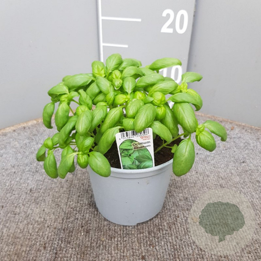| Toelichting | Basilicum is een aromatische kruidenplant met groene bladeren en paarse/witte bloemen. Het groeit het beste in de volle zon op neutrale tot voedselrijke grond. Ideaal voor in de moestuin of als potplant op het terras. Bloeit van juni tot september. |