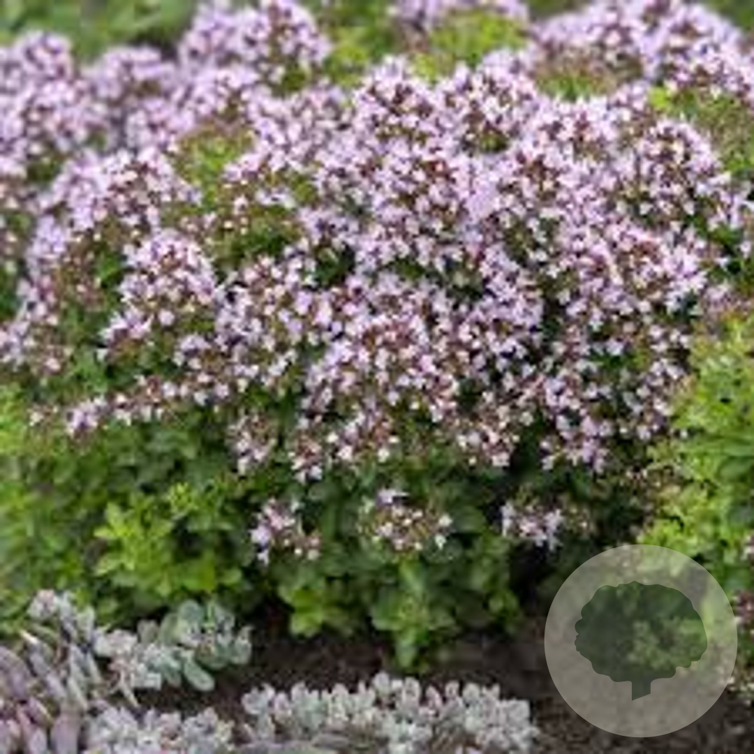 | Toelichting | De Wilde marjolein (Origanum vulg. 'Compactum') is een laagblijvende plant met paarse bloemen en groen blad. Bloeiend van juni tot september, gedijt goed in de zon op zandgrond, lichte klei of neutrale grond. Ideaal voor rotstuinen en borders. |