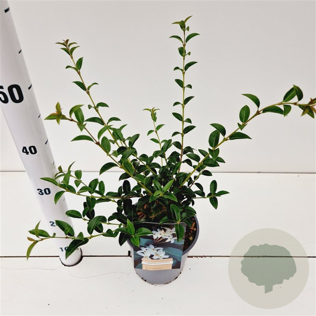 | Toelichting | De Osmanthus burkwoodii, ook wel bekend als Schijnhulst, is een prachtige groenblijvende heester met witte bloemen in de lente. Deze plant bereikt een hoogte van 200 cm en gedijt goed in zonnige tot halfschaduwrijke omgevingen met zandgrond, lichte klei of neutrale grond. |