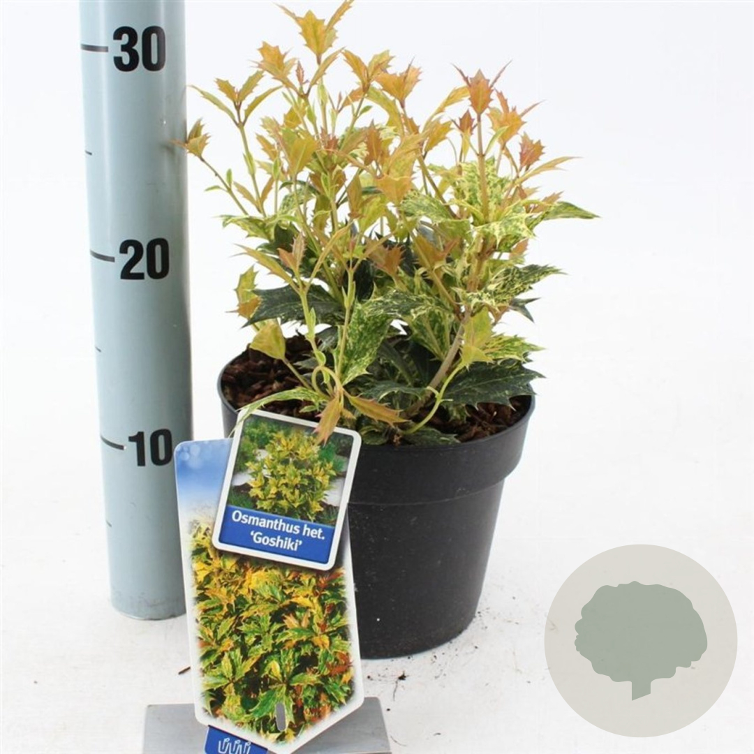 | Toelichting | De Schijnhulst 'Goshiki' is een prachtige heester met groenbont blad in de kleuren groen en crème. In april en mei bloeit deze plant met witte bloemen. Perfect voor zonnige tot halfschaduwrijke plekken in de tuin met zandgrond, lichte klei of neutrale grond. |