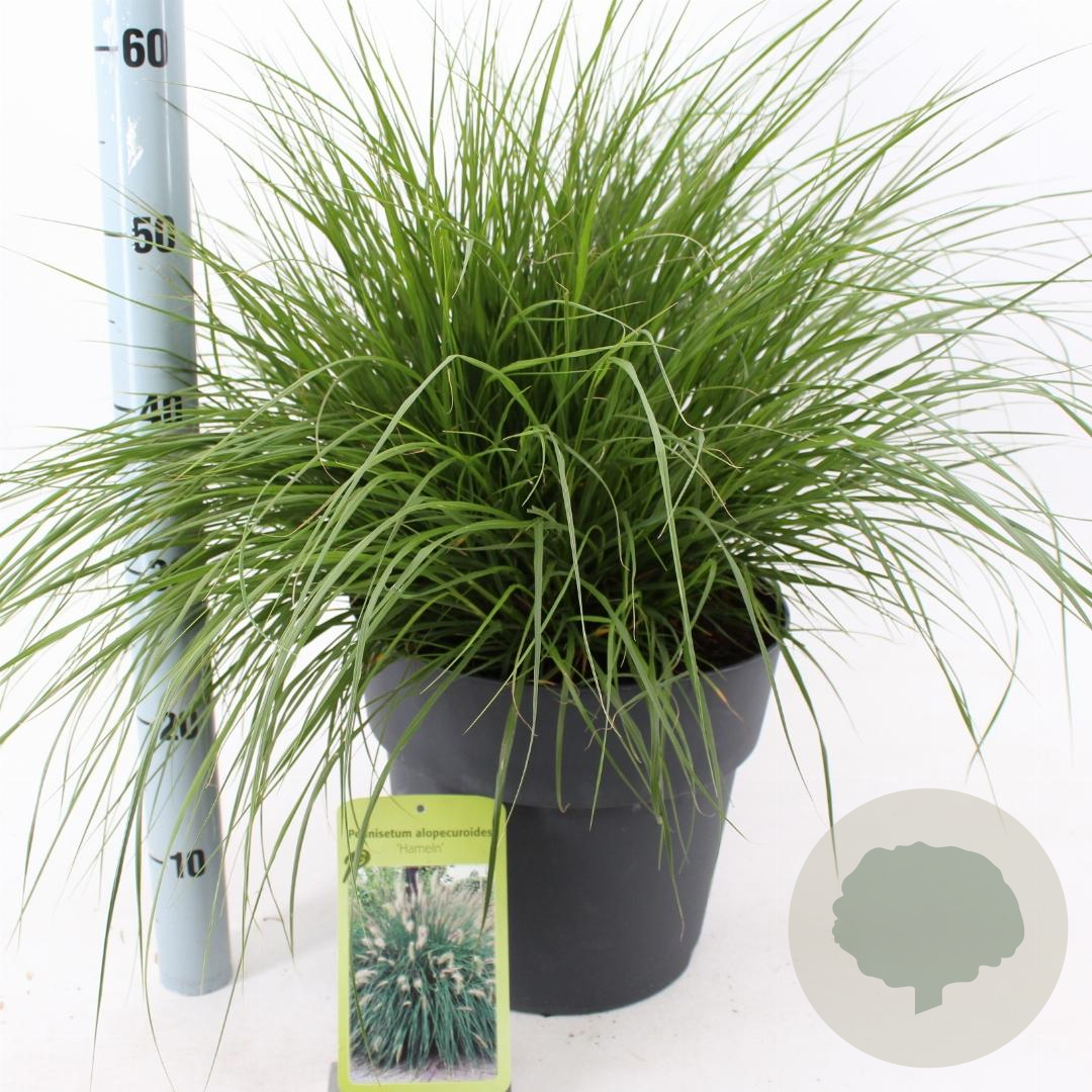 | Toelichting | Lampenpoetsersgras (Pennisetum al. 'Hameln') is een prachtige siergras met geelgekleurde bloempluimen en groen blad. Het bloeit van juli tot september en gedijt goed in zonnige standplaatsen met goede tuingrond of humusrijke grond. |