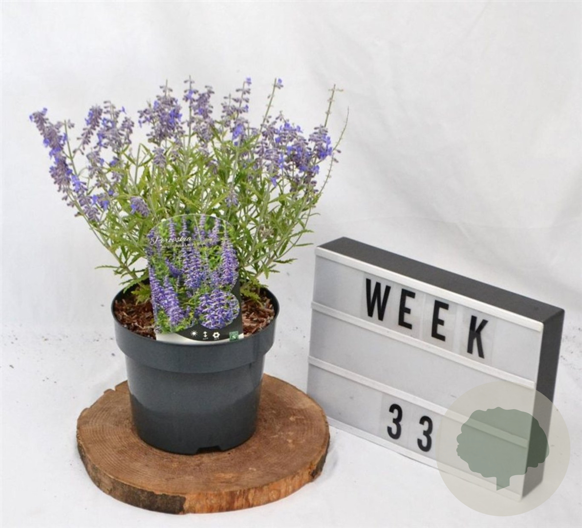 | Toelichting | Perovskia, ook wel Russische salie genoemd, is een prachtige vaste plant met lavendelkleurige bloemen en grijsgroen blad. Deze plant bloeit van juli tot september en gedijt het beste in de volle zon op zandgrond, lichte klei of neutrale grond. |