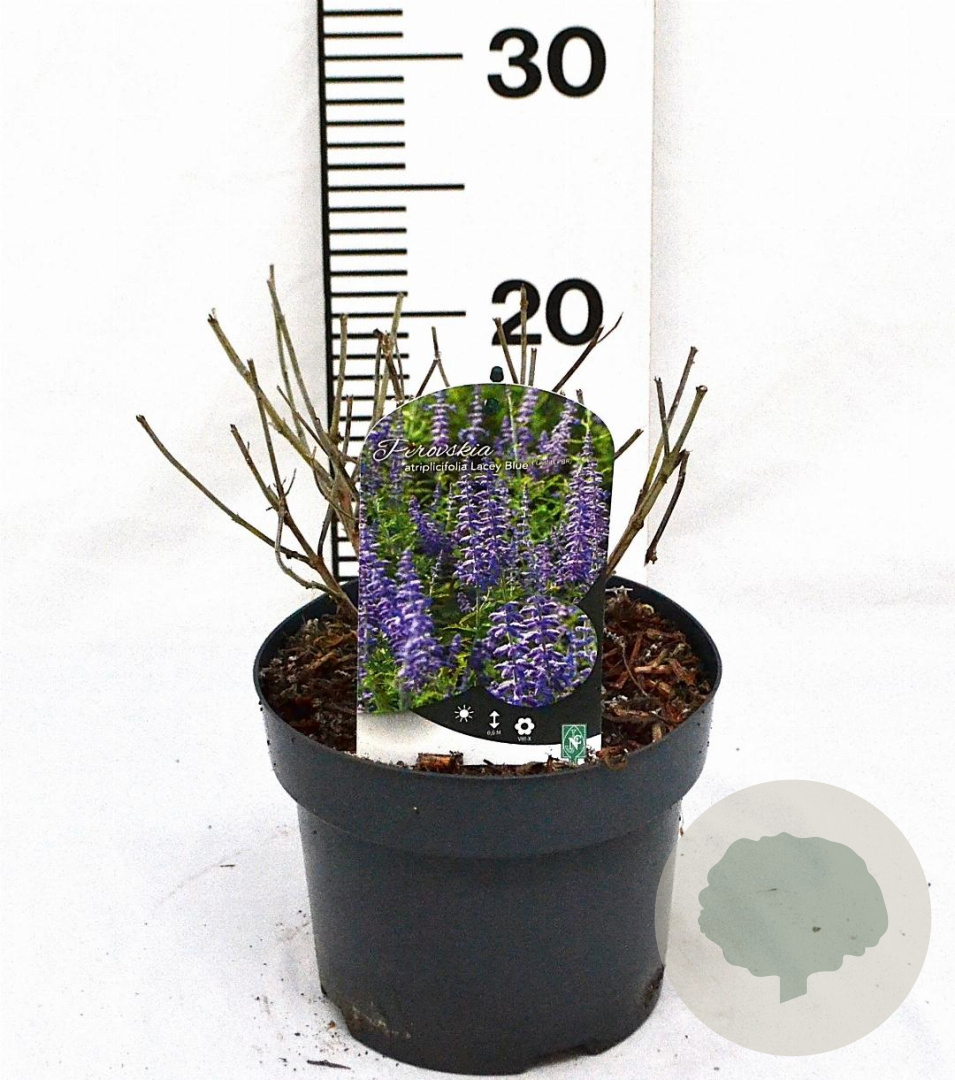 | Toelichting | Perovskia, ook wel Russische salie genoemd, is een prachtige vaste plant met lavendelkleurige bloemen en grijsgroen blad. Deze plant bloeit van juli tot september en gedijt het beste in de volle zon op zandgrond, lichte klei of neutrale grond. |