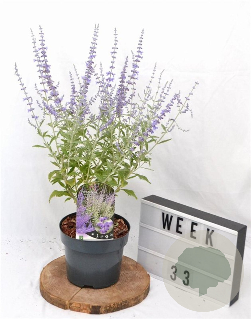 | Toelichting | Perovskia, ook wel Russische salie genoemd, is een prachtige vaste plant met lavendelkleurige bloemen en zilvergrijs blad. Deze plant bloeit van juli tot september en gedijt het beste in de volle zon op zand- of neutrale grond. |