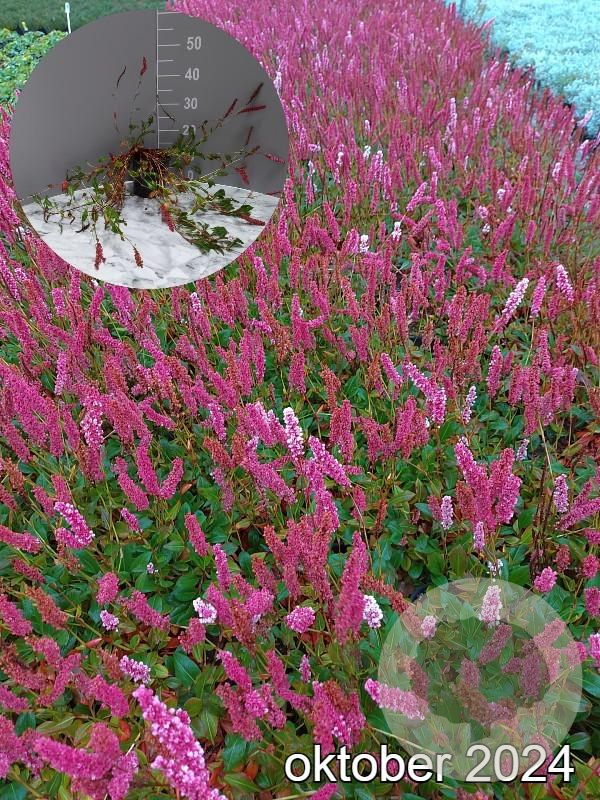 | Toelichting | Duizendknoop, met rode bloemen en groen blad, bloeit van juli tot september. Deze plant gedijt goed in zon en halfschaduw op lichte klei, neutrale of humusrijke grond. Bereikt een hoogte van 60 cm. |