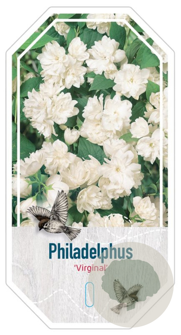| Toelichting | De Boerenjasmijn (Philadelphus 'Virginal') is een prachtige heester met witte bloemen die heerlijk geuren. De plant bloeit in de periode mei-juni en wordt ongeveer 200 cm hoog. Zet hem op een zonnige tot halfschaduwrijke plek in lichte klei of neutrale, voedselrijke grond. |