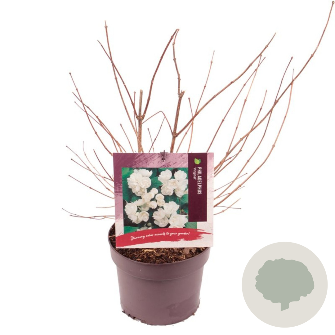 | Toelichting | De Boerenjasmijn (Philadelphus 'Virginal') is een prachtige heester met witte bloemen die heerlijk geuren. De plant bloeit in de periode mei-juni en wordt ongeveer 200 cm hoog. Zet hem op een zonnige tot halfschaduwrijke plek in lichte klei of neutrale, voedselrijke grond. |