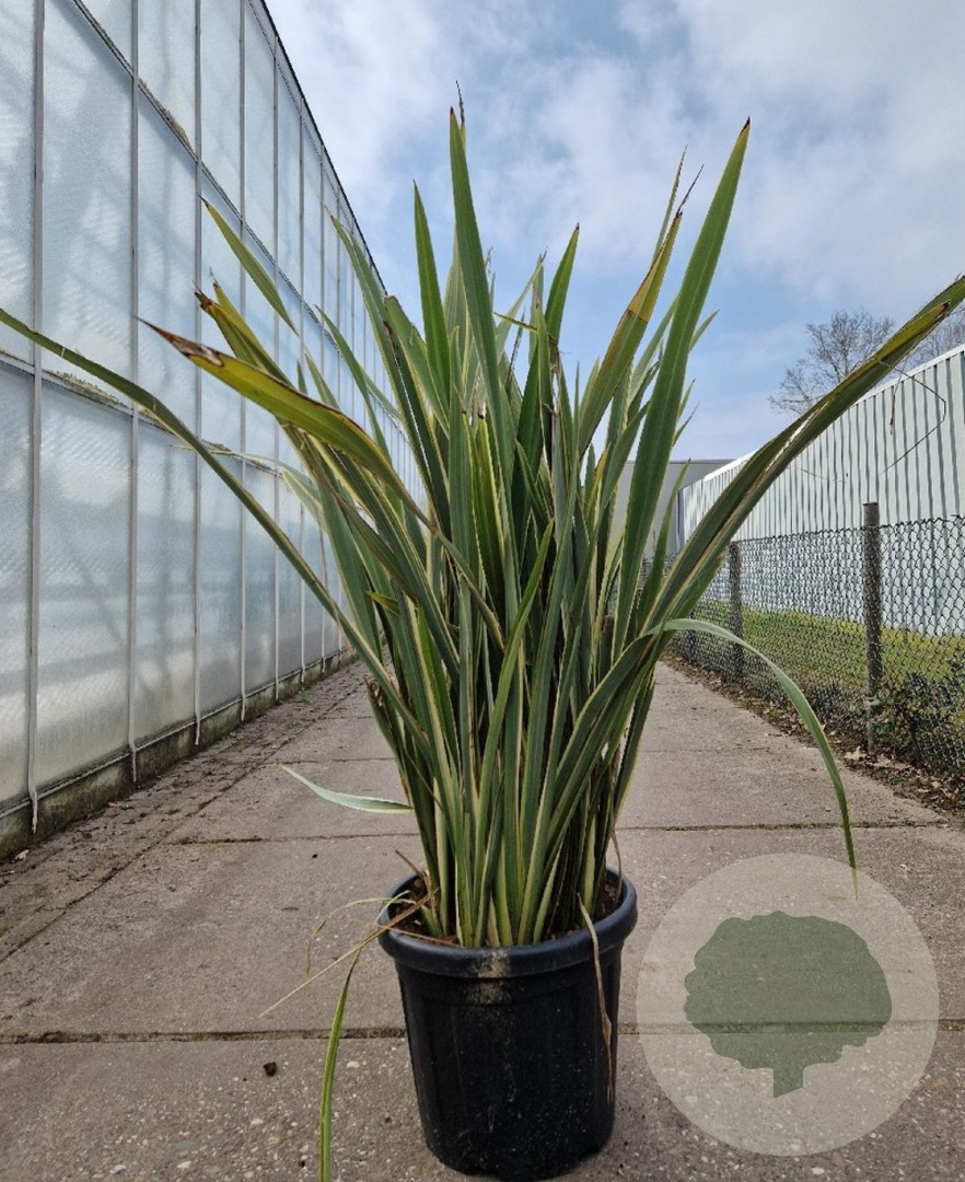 | Toelichting | De Phormium tenax 'Aureovariegata', ook wel bekend als Nieuw-Zeelandse vlas, heeft prachtig groen met crème gekleurd blad en rode bloemen in juni en juli. Deze plant gedijt goed in zonnige tot halfschaduwrijke plekken met neutrale tot voedselrijke grond. |