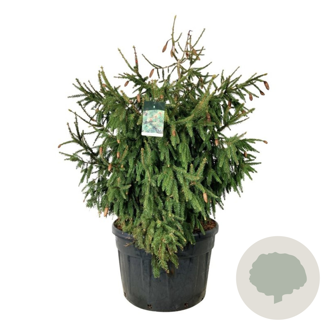 | Toelichting | De Dwergspar (Picea a. 'Acrocona') is een compacte naaldboom met groene bladeren en bereikt een hoogte van 200 cm. Deze sierlijke boom gedijt goed in zonnige tot halfschaduwrijke omgevingen met neutrale grond. Perfect voor tuinen en borders. |