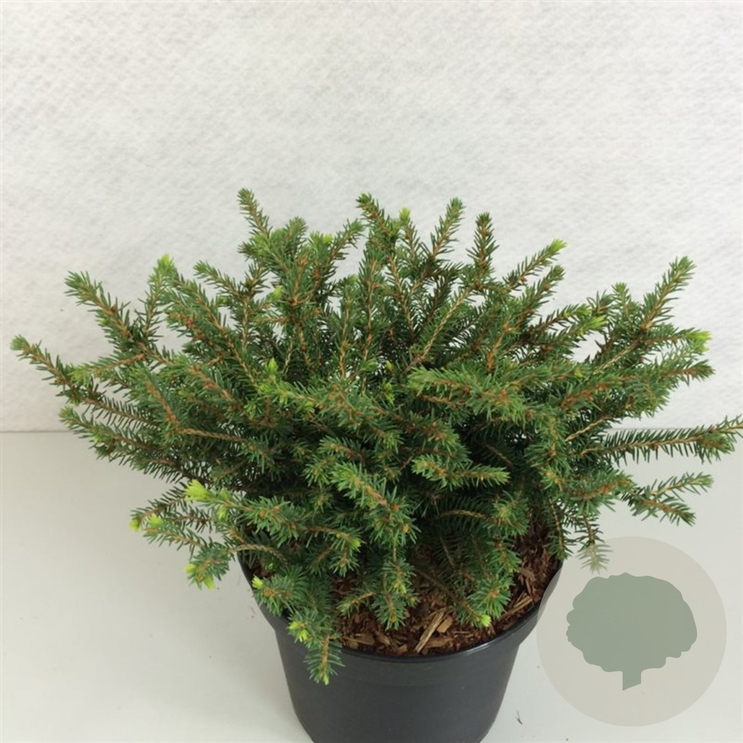 | Toelichting | De Dwergspar (Picea a. 'Nidiformis') is een compacte conifeer met groene naalden. Deze dwergvorm bereikt een volwassen hoogte van ongeveer 100 cm en gedijt goed in zonnige tot halfschaduwrijke omgevingen met neutrale, goed doorlatende grond. |