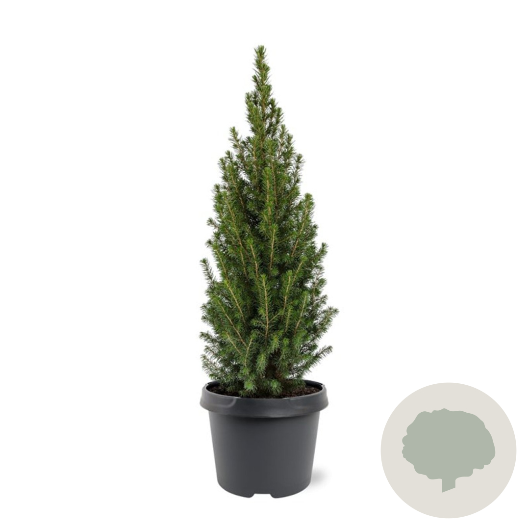 | Toelichting | De Fijnspar (Picea gl. Perfecta) is een prachtige naaldboom met donkergroene bladeren. Deze boom kan een hoogte bereiken van 200 tot 300 cm en gedijt goed in zonnige tot halfschaduwrijke omgevingen op diverse grondsoorten. Perfect voor een natuurlijke uitstraling in de tuin. |