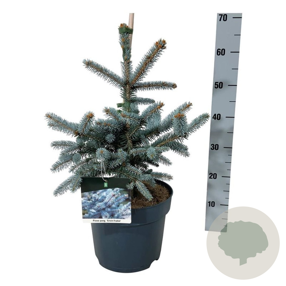 | Toelichting | De Blauwspar (Picea pungens 'Erich Frahm') is een prachtige naaldboom met blauwgekleurd loof. Deze boom kan een hoogte bereiken van 300 cm en gedijt goed in zonnige standplaatsen op zandgrond, neutrale grond of goede tuingrond. |