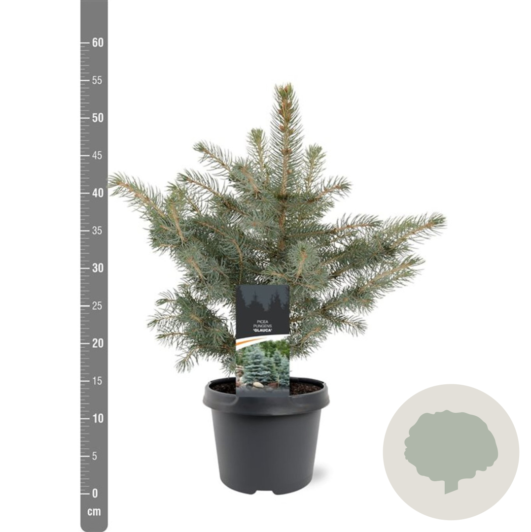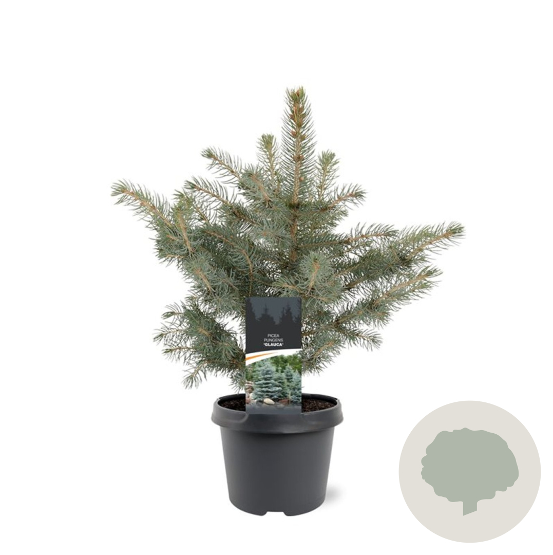 | Toelichting | De Blauwe spar (Picea pungens glauca) is een prachtige naaldboom met blauwgekleurde naalden. Deze boom kan een hoogte bereiken van 800 cm en gedijt goed in zonnige standplaatsen op zandgrond, klei of neutrale grond. |