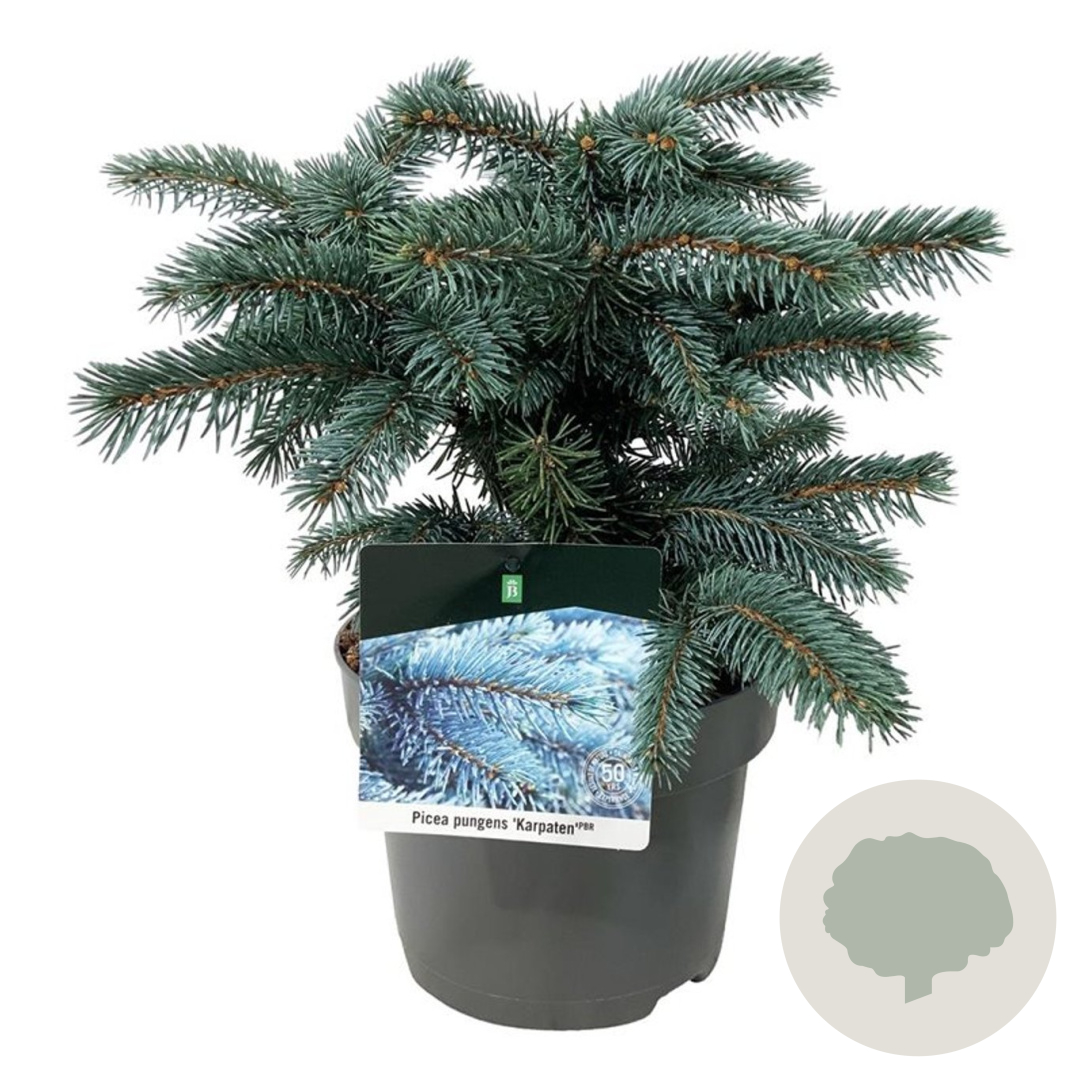 | Toelichting | De Blauwspar 'Karpaten' is een prachtige conifeer met blauw naaldvormig blad. Deze boom kan een hoogte bereiken van 300 cm en gedijt goed in zowel zon als halfschaduw op zandgrond, klei of neutrale grond. |
