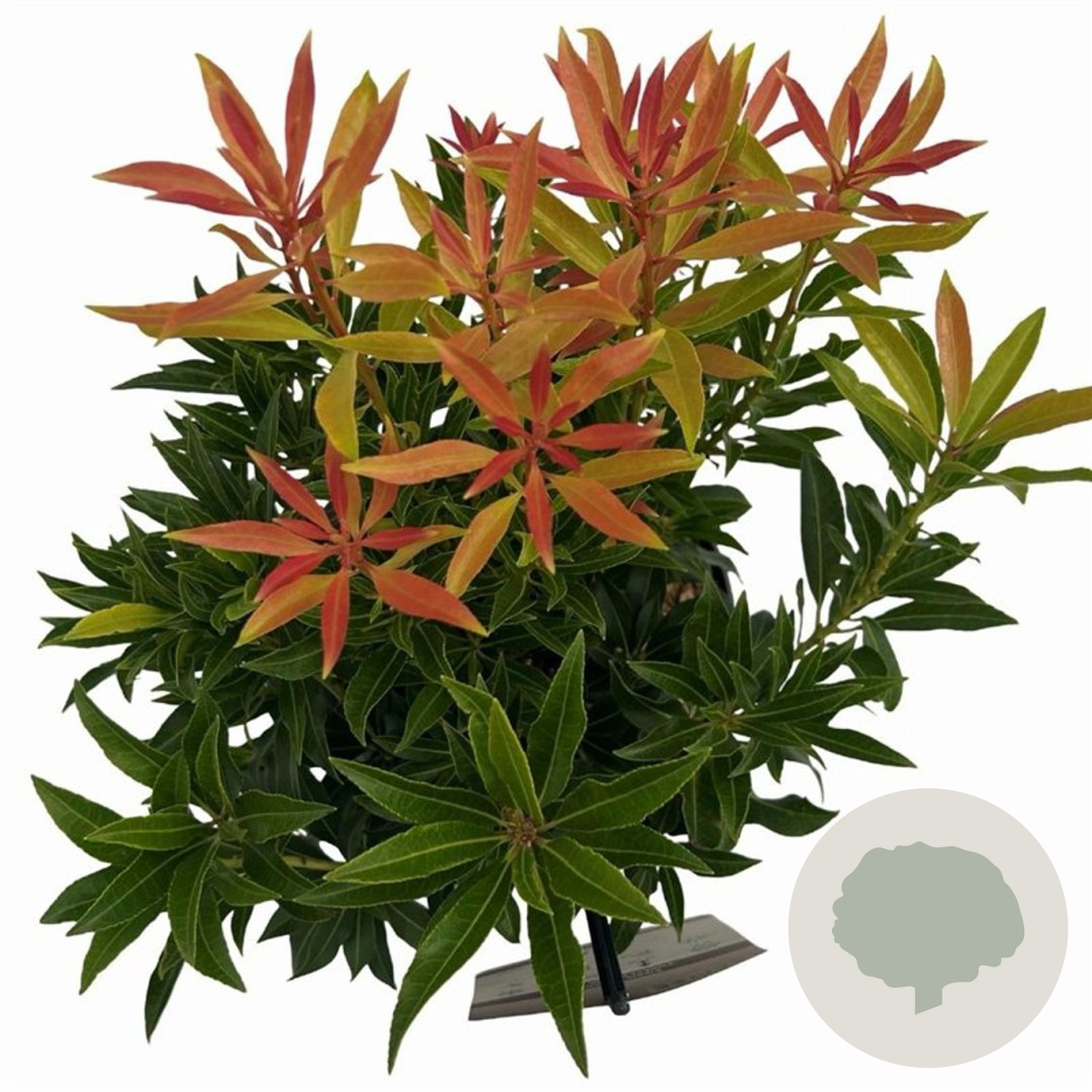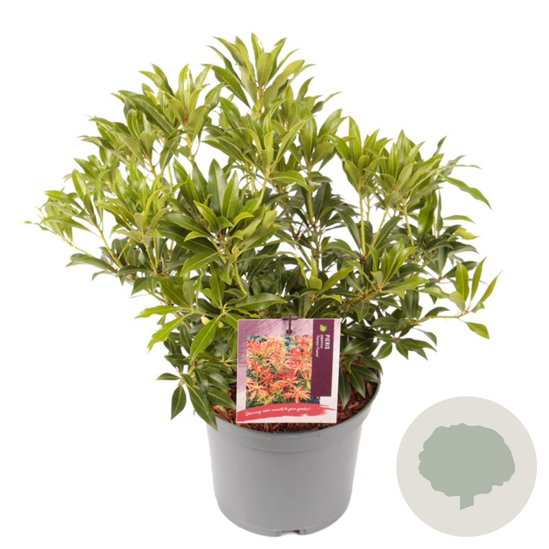 | Toelichting | De Rotsheide, Pieris 'Forest Flame', is een prachtige heester met groenblijvend blad dat in het voorjaar rood uitloopt. In april en mei bloeit de plant met witte bloemen. Perfect voor een plekje in de halfschaduw op zure en humusrijke grond. |