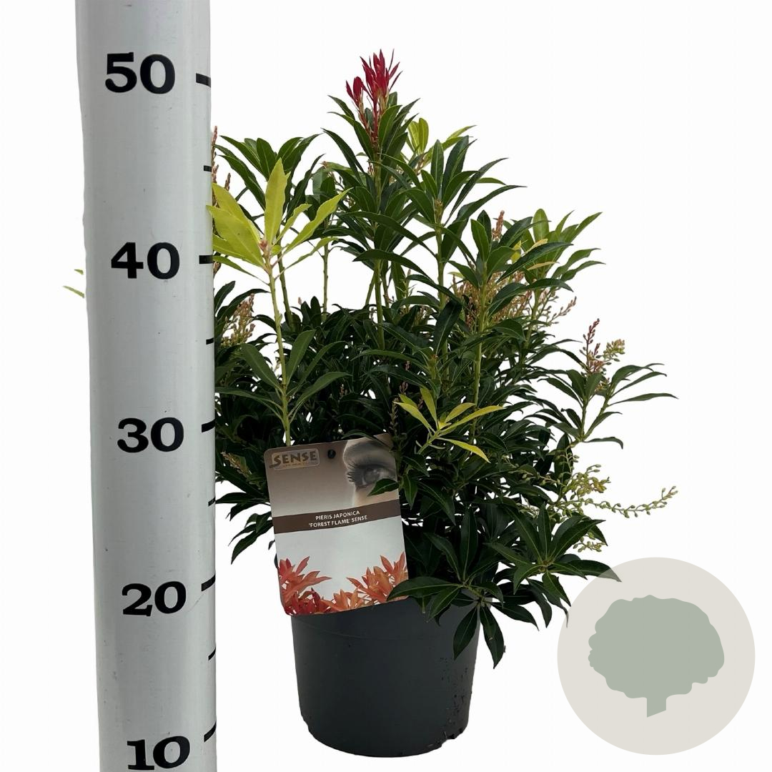 | Toelichting | De Rotsheide, Pieris 'Forest Flame', is een prachtige heester met groenblijvend blad dat in het voorjaar rood uitloopt. In april en mei bloeit de plant met witte bloemen. Perfect voor een plekje in de halfschaduw op zure en humusrijke grond. |