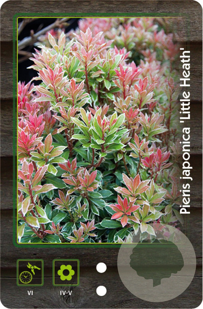 | Toelichting | De Rotsheide, Pieris jap. 'Little Heath', is een compacte heester met groene bladeren en witte bloemen in maart - april. Perfect voor een halfschaduwrijke plek in zure, humusrijke grond. Bereikt een hoogte van 60 - 100 cm en heeft een lage stikstofbehoefte. |