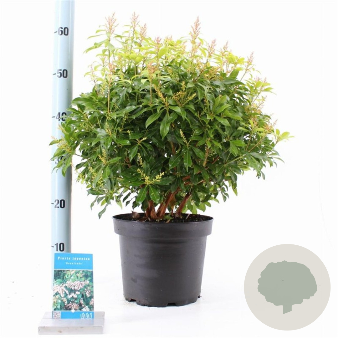 | Toelichting | De Pieris japonica 'Rosalinda' is een prachtige struik met witte bloemen en groen blad. Deze plant bloeit in maart en april en gedijt het beste in halfschaduw op zure en humusrijke grond. Bereikt een hoogte van 150 cm. |