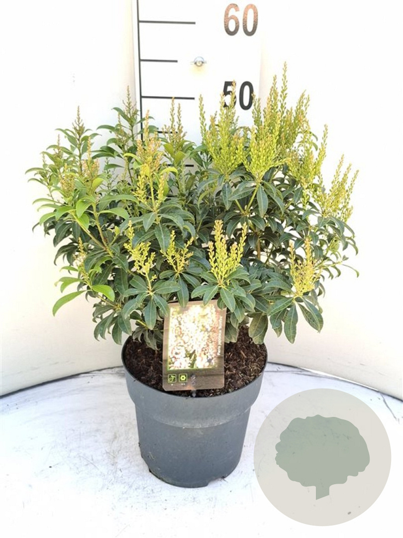 | Toelichting | De Pieris japonica 'Bonfire', ook wel bekend als Rotsheide, is een prachtige struik met donkergroen blad en witte bloemen in maart - april. Deze plant gedijt goed in de halfschaduw op zure en humusrijke grond, en bereikt een hoogte van 150 cm. |
