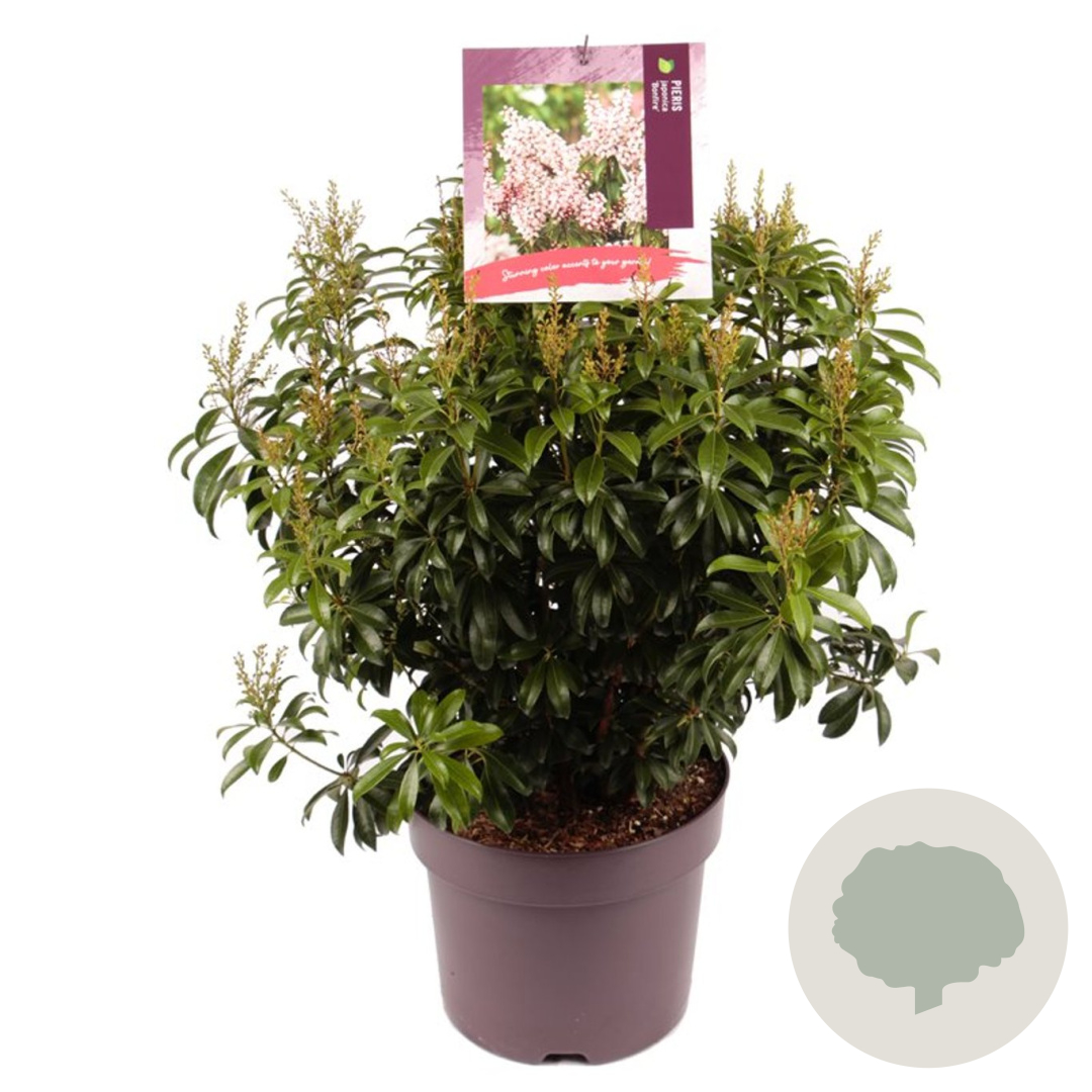 | Toelichting | De Pieris japonica 'Bonfire', ook wel bekend als Rotsheide, is een prachtige struik met donkergroen blad en witte bloemen in maart - april. Deze plant gedijt goed in de halfschaduw op zure en humusrijke grond, en bereikt een hoogte van 150 cm. |