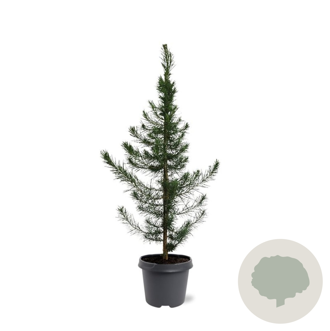 ToelichtingDe Aleppo den is een imposante naaldboom met groene naalden en een volwassen hoogte van 800 cm. Deze boom gedijt goed in zonnige omstandigheden op droge zandgrond.