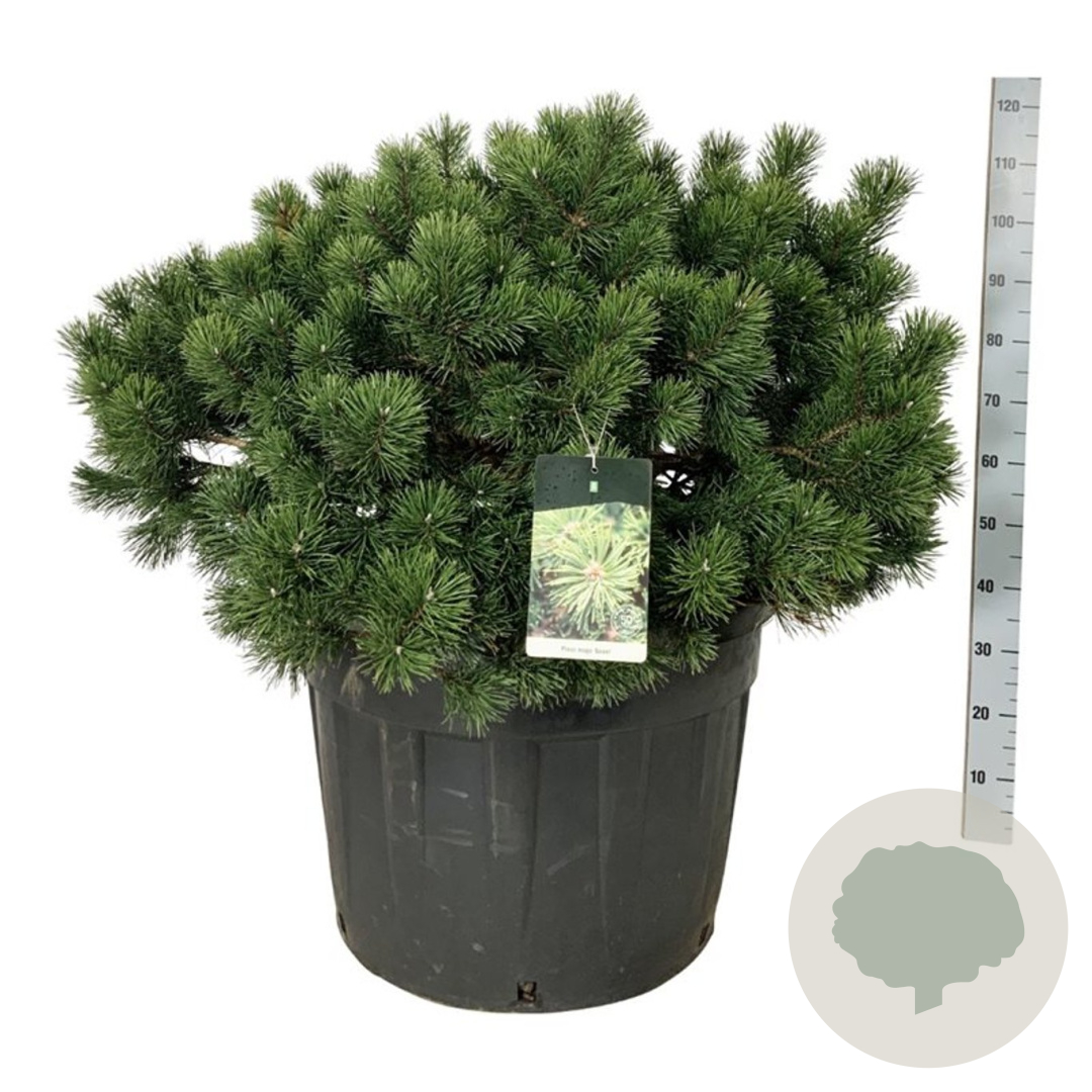 | Toelichting | De Dwergbergden (Pinus mugo 'Gnom') is een compacte naaldboom met donkergroen blad. Deze dwergvariant bereikt een hoogte van 100 cm en gedijt goed in zonnige standplaatsen op diverse grondsoorten. Perfect voor kleine tuinen of rotstuinen. |