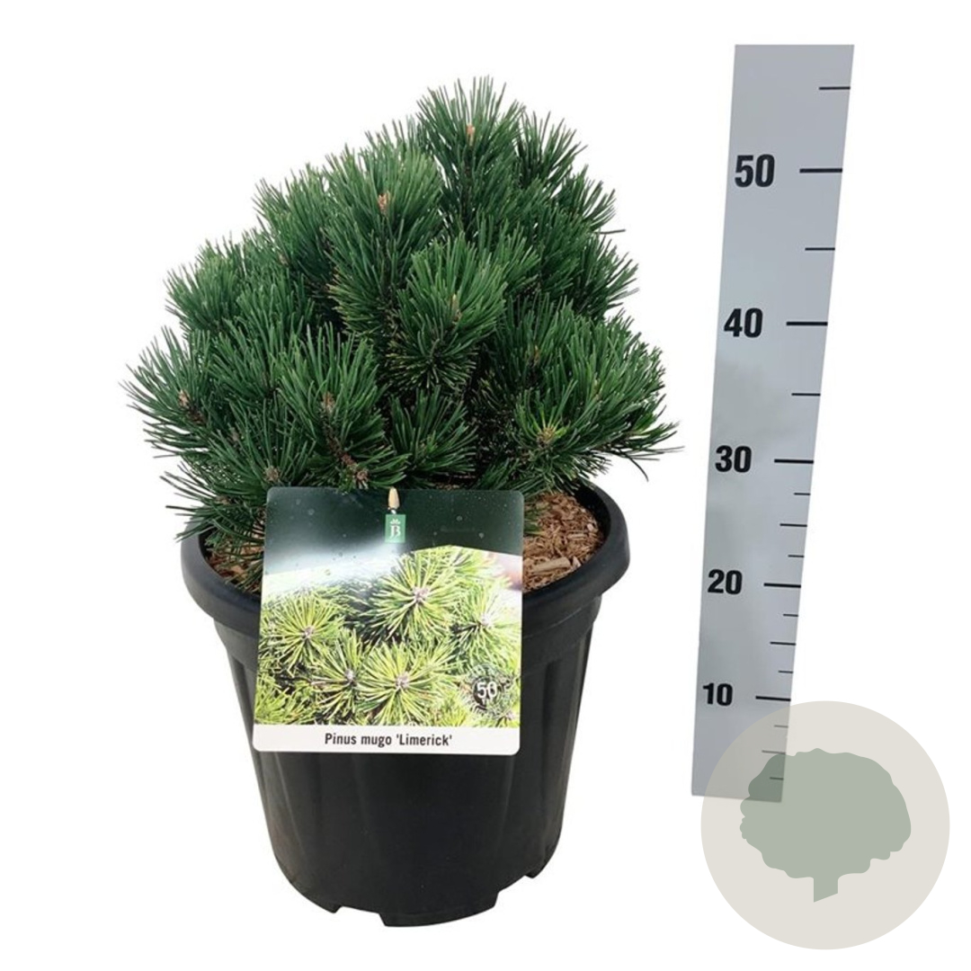 | Toelichting | De Dwergbergden 'Limerick' is een compacte conifeer met donkergroene naalden. Deze dwergvorm bereikt een hoogte van 150 cm en gedijt goed in zonnige standplaatsen op zandgrond, lichte klei of droge zandgrond. |