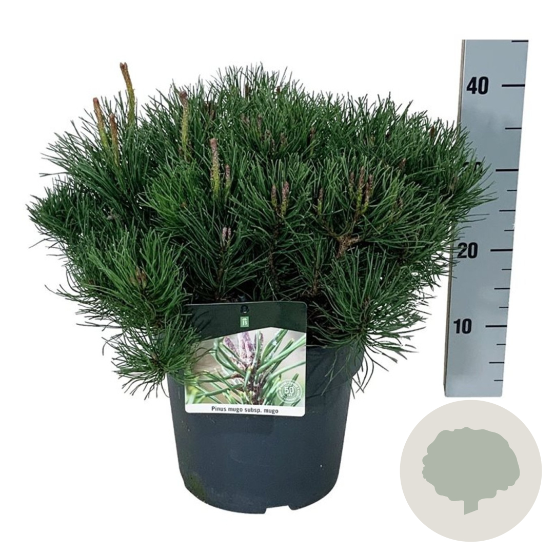 | Toelichting | De Dwergbergden (Pinus mugo mugo) is een compacte naaldboom met donkergroene naalden. Deze dwergvorm bereikt een hoogte van 150 cm en gedijt goed in zonnige standplaatsen op diverse grondsoorten, van zandgrond tot kalkrijke grond. |