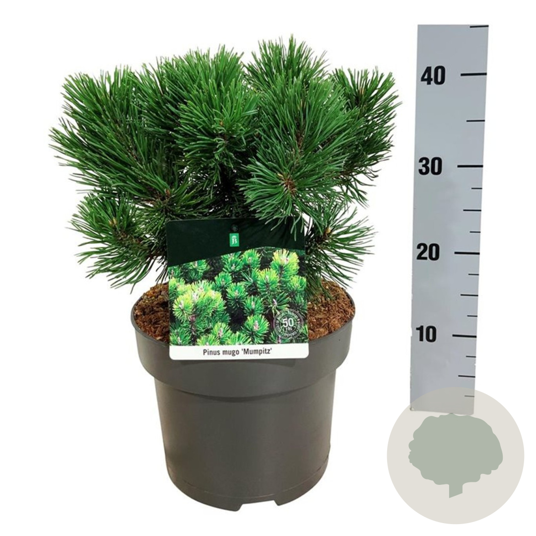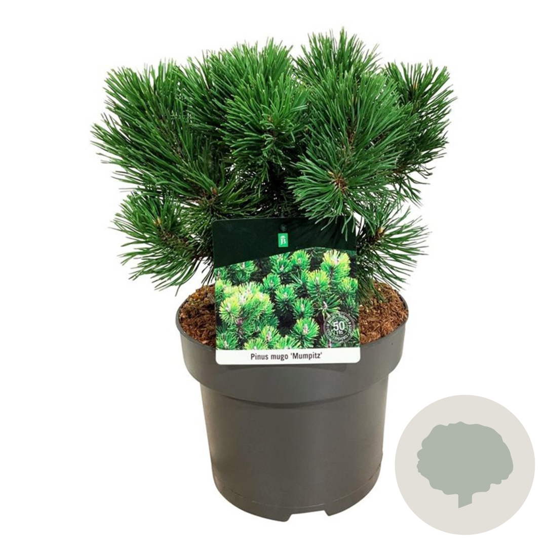 | Toelichting | De Dwergbergden (Pinus mugo 'Mumpitz') is een compacte naaldboom met donkergroen blad. Deze dwergvorm bereikt een hoogte van 100 cm en gedijt goed in zonnige standplaatsen op zandgrond, klei of neutrale grond. |