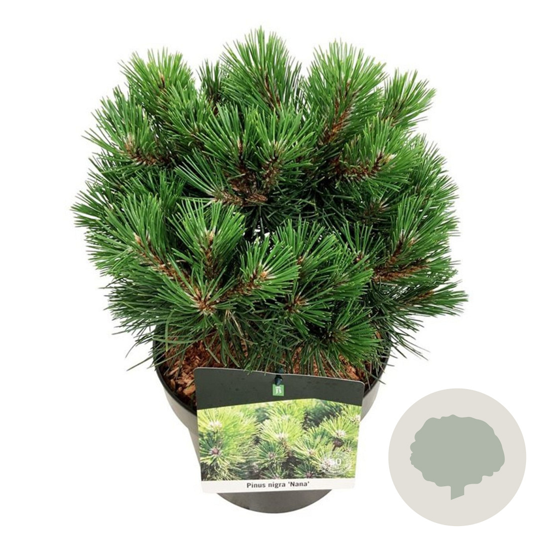 | Toelichting | De Zwarte den 'Nana' is een compacte dwergvorm van de Pinus nigra met donkergroene naalden. Deze langzaam groeiende conifeer gedijt goed in zonnige tuinen op verschillende grondsoorten. Perfect voor kleine tuinen of rotstuinen. |