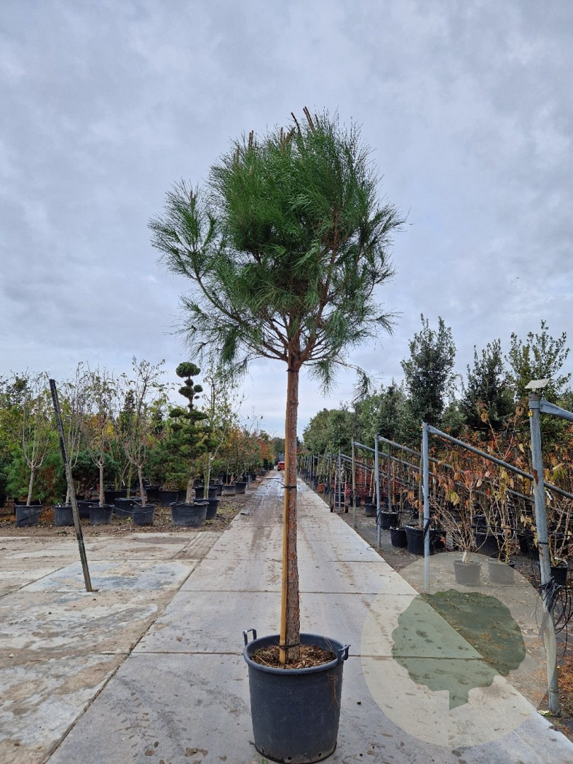 | Toelichting | De Pinus pinea, ook wel bekend als Parasolden, is een imposante naaldboom die tot wel 12 meter hoog kan worden. Met zijn groene naalden en karakteristieke parasolvormige kroon is het een echte eyecatcher in de tuin. Deze boom gedijt het beste in zonnige standplaatsen op diverse grondsoorten. |