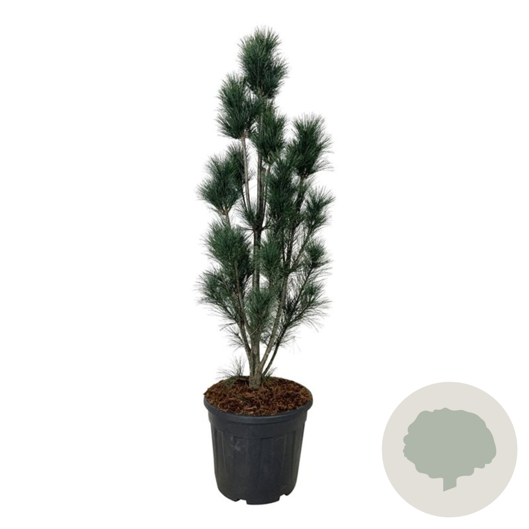 | Toelichting | De Witte den (Pinus strobus 'Stowe Pillar') is een prachtige naaldboom met groene bladeren en een slanke groeiwijze. In mei-juni bloeit deze boom, ideaal voor een zonnige standplaats in neutrale, goed doorlatende tuingrond. |