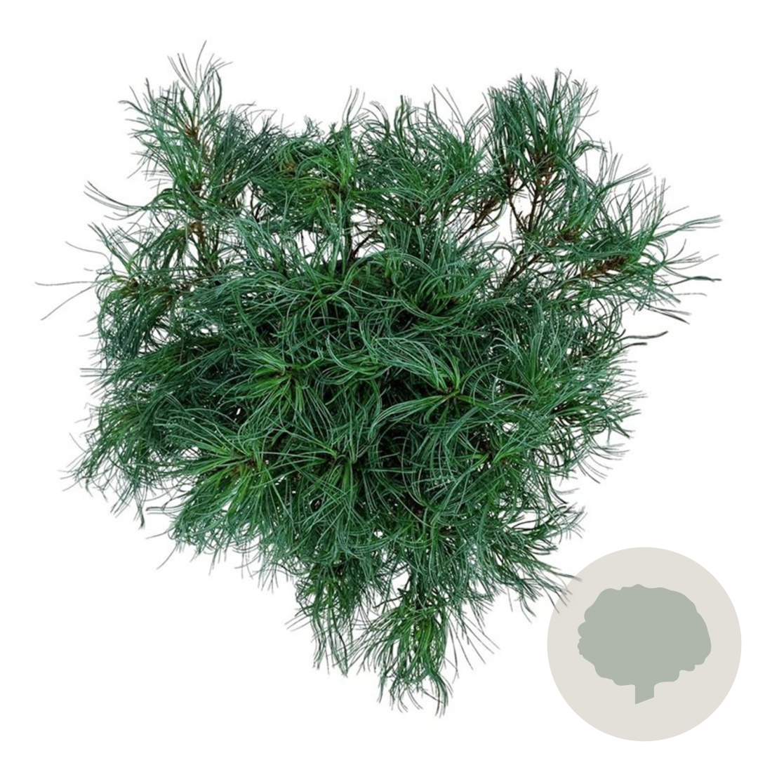 | Toelichting | Witte den 'Tiny Kurls' is een compacte naaldboom met groen blad en een volwassen hoogte van 150-200 cm. Deze dennensoort bloeit in mei-juni en gedijt het beste in de volle zon op zandgrond of neutrale grond. |