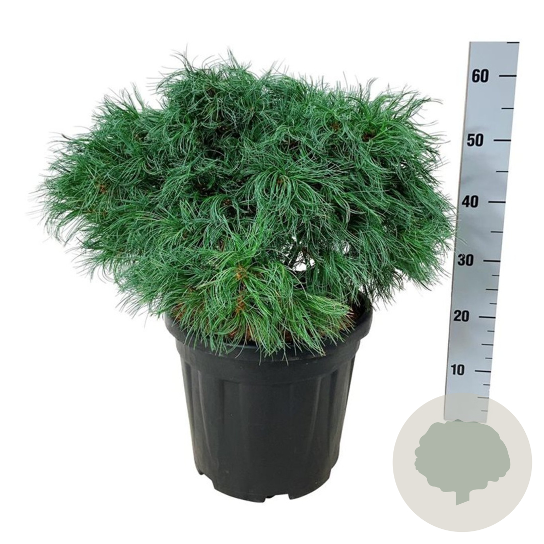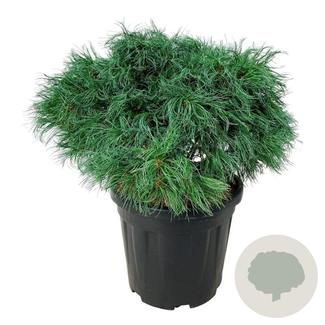 | Toelichting | Witte den 'Tiny Kurls' is een compacte naaldboom met groen blad en een volwassen hoogte van 150-200 cm. Deze dennensoort bloeit in mei-juni en gedijt het beste in de volle zon op zandgrond of neutrale grond. |