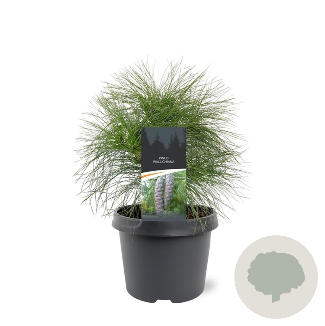 | Toelichting | De Pinus wallichiana, ook wel bekend als de Himalayaceder, is een imposante naaldboom met groene bladeren. Deze boom kan een hoogte bereiken van 20 meter en gedijt goed in zonnige omstandigheden op verschillende grondsoorten. |