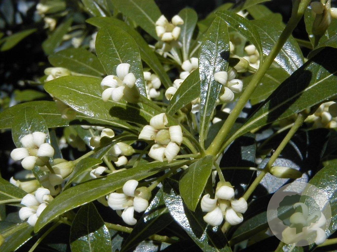 ToelichtingPittosporum, met crèmekleurige bloemen en groen blad, bloeit in mei-juni en wordt ongeveer 150 cm hoog. Deze plant gedijt goed in zon en halfschaduw op zandgrond, neutrale grond of goede tuingrond.