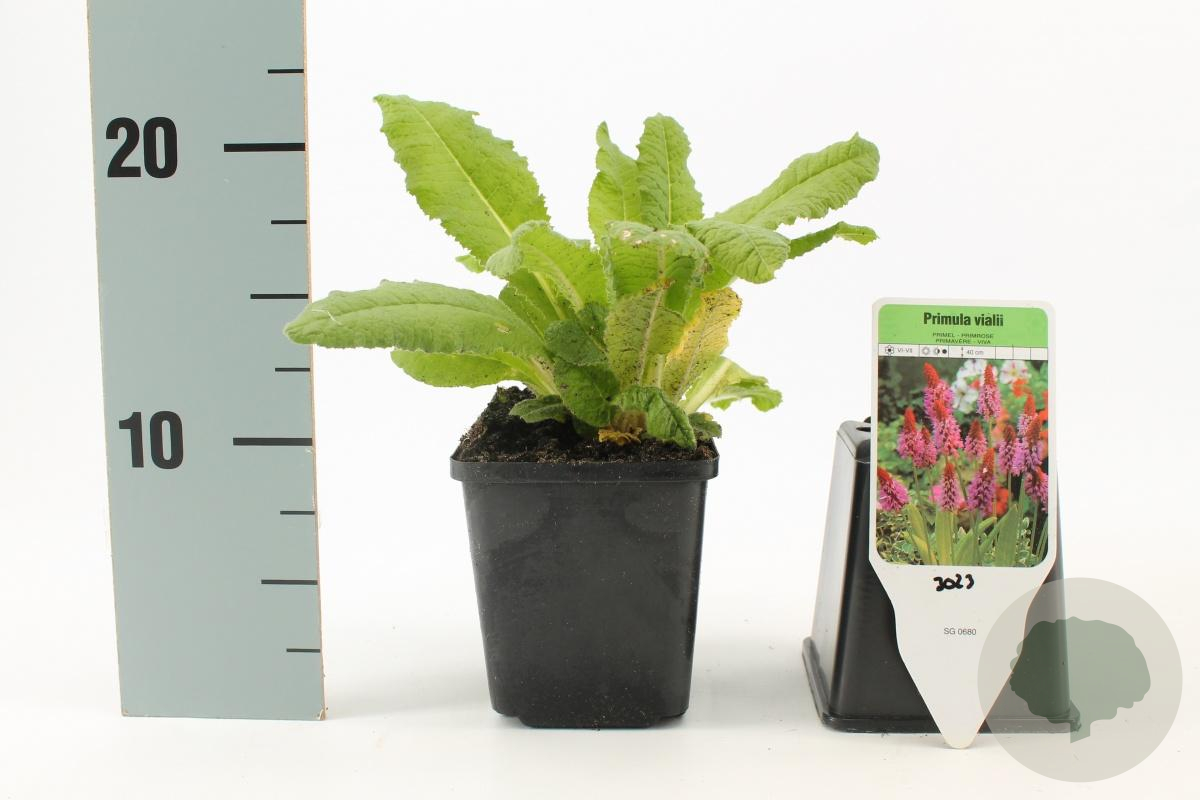 | Toelichting | De Sleutelbloem (Primula vialii) is een prachtige plant met paarsrode bloemen die bloeien in mei en juni. Deze plant gedijt het beste in de halfschaduw op lichte klei of neutrale, voedselrijke grond. Bereikt een hoogte van ongeveer 30 cm. |